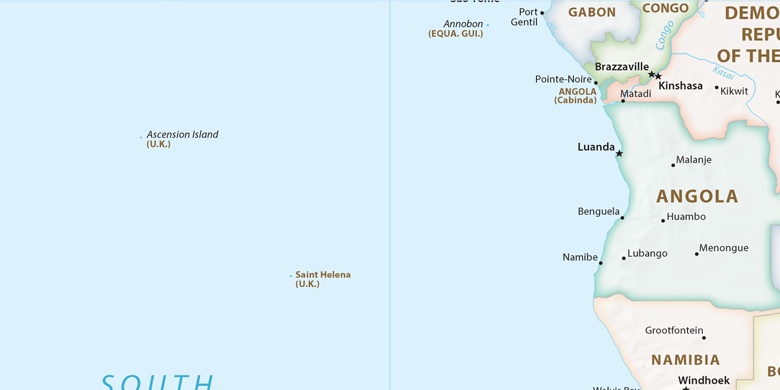 Jamestown (Saint Helena) , St. Helena, Ascension og Tristan da Cunha på kartet.